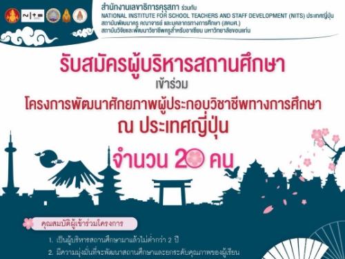 คุรุสภาเปิดรับสมัครผู้บริหารสถานศึกษาเข้าร่วมโครงการ พัฒนาศักยภาพผู้ประกอบวิชาชีพทางการศึกษา ณ ประเทศญี่ปุ่น รับสมัครถึง 17 ส.ค.2561