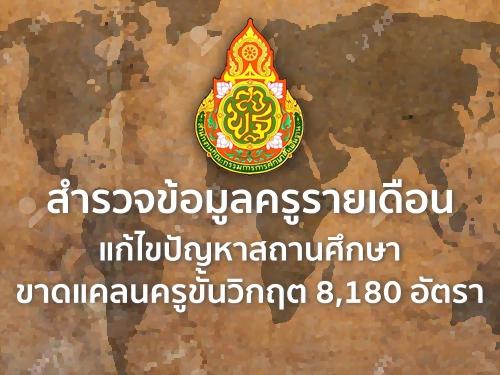 สำรวจข้อมูลครูรายเดือนแก้ไขปัญหาสถานศึกษาขาดแคลนครูขั้นวิกฤต 8,180 อัตรา