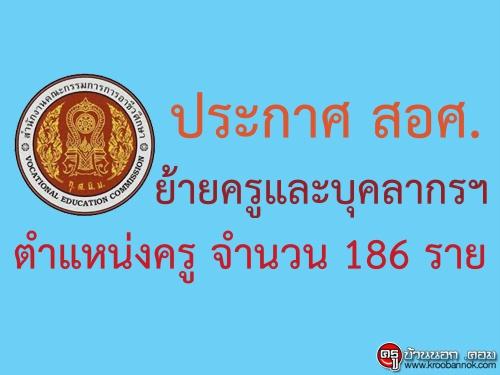 สอศ.ประกาศเรื่องย้ายและแต่งตั้งข้าราชการครูและบุคลากรทางการศึกษา ตำแหน่งครู จำนวน 186 ราย