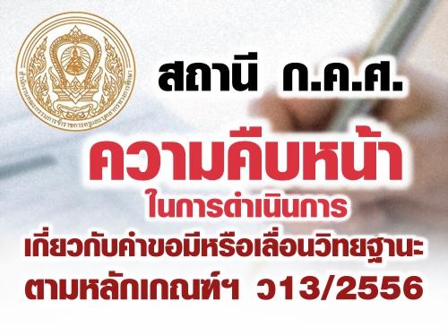 สถานี ก.ค.ศ. ความคืบหน้าในการดำเนินการเกี่ยวกับคำขอมีหรือเลื่อนวิทยฐานะ ตามหลักเกณฑ์ฯ ว 13/2556