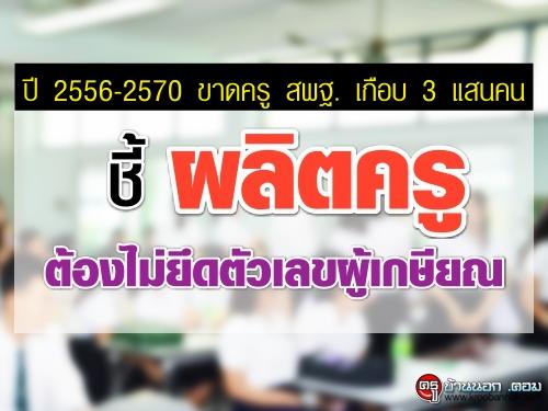ชี้ผลิตครูต้องไม่ยึดตัวเลขผู้เกษียณ ปี 2556-2570 ขาดครู สพฐ. เกือบ 3 แสนคน