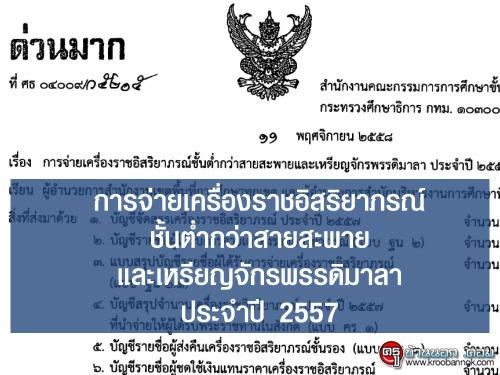 ด่วนมาก การจ่ายเครื่องราชอิสริยาภรณ์ชั้นต่ำกว่าสายสะพายและเหรียญจักรพรรดิมาลา ประจำปี 2557