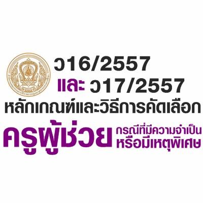 ด่วน ว16/2557 และ ว17/2557 หลักเกณฑ์และวิธีการคัดเลือกครูผู้ช่วย กรณีที่มีความจำเป็นหรือมีเหตุพิเศษ