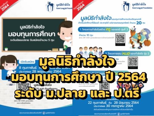 มูลนิธิกำลังใจ เปิดรับสมัครทุนการศึกษา ประจำปี 2564 ทั้งหมด 25 ทุน