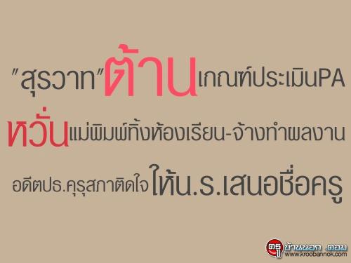 "สุรวาท"ต้านเกณฑ์ประเมินPA หวั่นแม่พิมพ์ทิ้งห้องเรียน-จ้างทำผลงาน อดีตปธ.คุรุสภาติดใจให้น.ร.เสนอชื่อครู