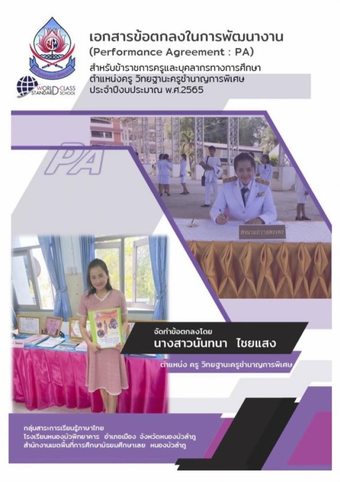 ข้อตกลงในการพัฒนางาน (((PA))) ตำแหน่ง ครู วิทยฐานะ ครูชำนาญการพิเศษ ของนางสาวนันทนา ไชยแสง
