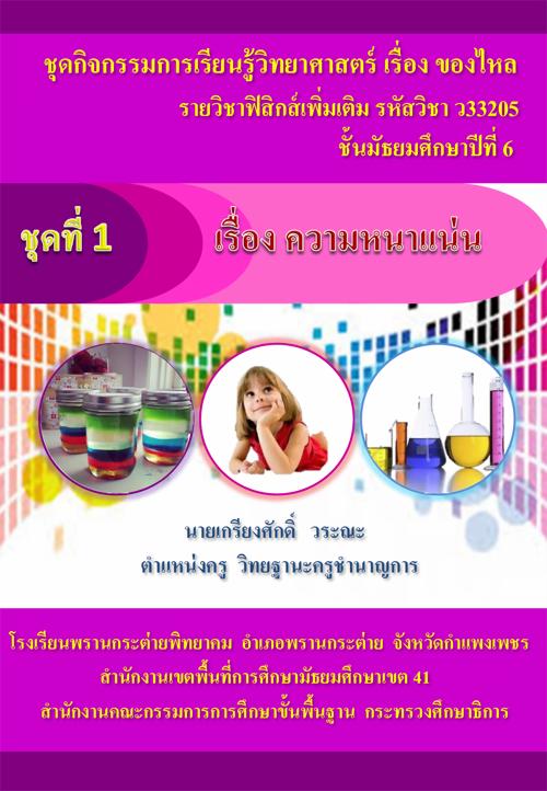 ชุดกิจกรรมการเรียนรู้วิทยาศาสตร์ เรื่องของไหล รายวิชาฟิสิกส์เพิ่มเติม รหัสวิชา ว33205 ชั้นมัธมศึกษาปีที่ 6 ผลงานครูเกรียงศักดิ์ วระณะ