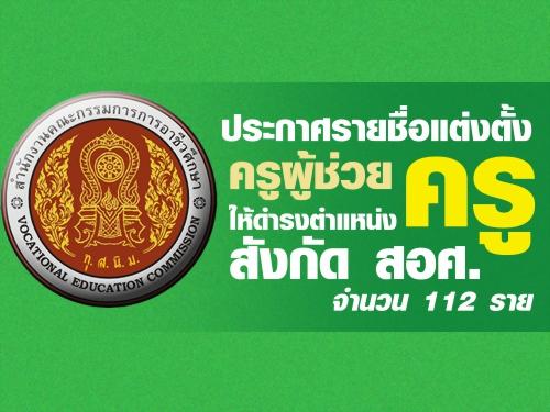 สอศ.ประกาศรายชื่อแต่งตั้งครูผู้ช่วยให้ดำรงตำแหน่งครู จำนวน 112 ราย