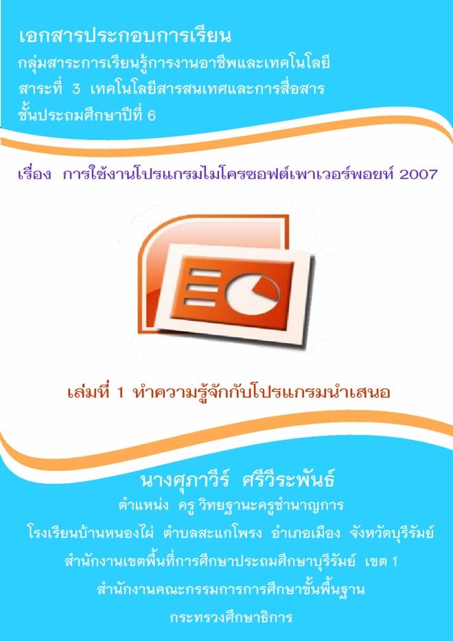 เอกสารประกอบการเรียน การใช้งานโปรแกรมไมโครซอฟต์เพาเวอร์พอยท์ 2007 ผลงานครูศุภาวีร์ ศรีวีระพันธ์