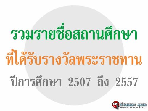 รวมรายชื่อสถานศึกษาที่ได้รับรางวัลพระราชทาน ปีการศึกษา 2507 ถึง 2557