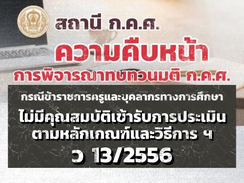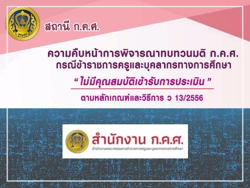 ความคืบหน้าการพิจารณาทบทวนมติ ก.ค.ศ. กรณีข้าราชการครูและบุคลากรทางการศึกษา ไม่มีคุณสมบัติเข้ารับการประเมินตามหลักเกณฑ์และวิธีการ ฯ ว 13/2556