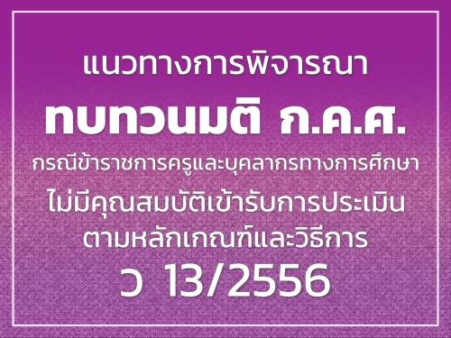 แนวทางการพิจารณาทบทวนมติ ก.ค.ศ. กรณีข้าราชการครูและบุคลากรทางการศึกษา ไม่มีคุณสมบัติเข้ารับการประเมินตามหลักเกณฑ์และวิธีการ ว 13/2556