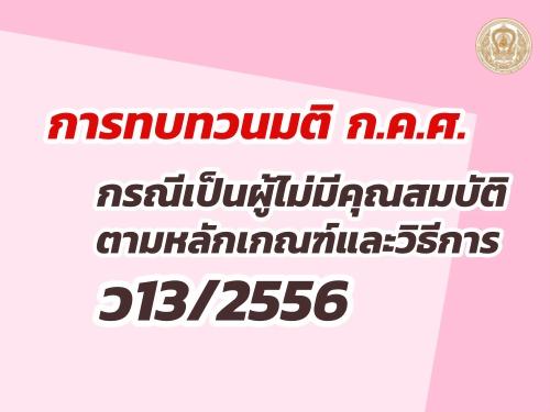 การทบทวนมติ ก.ค.ศ. กรณีไม่มีคุณสมบัติ ตามหลักเกณฑ์และวิธีการ ว 13/2556