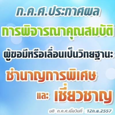 ผลการพิจารณาคุณสมบัติผู้ขอเลื่อนวิทยฐานะชำนาญการพิเศษและเชี่ยวชาญ (มติก.ค.ศ. 12ก.ย.2557)