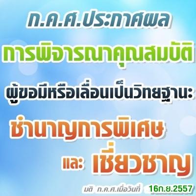 ผลการพิจารณาคุณสมบัติผู้ขอเลื่อนวิทยฐานะชำนาญการพิเศษและเชี่ยวชาญ (มติก.ค.ศ. 16ก.ย.2557)
