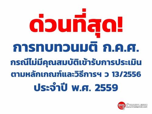 ด่วนที่สุด! การทบทวนมติ ก.ค.ศ. กรณีไม่มีคุณสมบัติเข้ารับการประเมิน ตามหลักเกณฑ์และวิธีการฯ ว 13/2556 ประจำปี พ.ศ. 2559