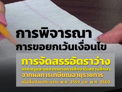 การพิจารณาการขอยกเว้นเงื่อนไขการจัดสรรอัตราว่างข้าราชการครูและบุคลากรทางการศึกษาในสถานศึกษา จากผลการเกษียณอายุราชการ เมื่อสิ้นปีงบประมาณ พ.ศ.2559-2560