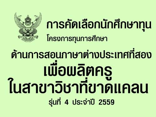การคัดเลือกนักศึกษาทุนโครงการทุนการศึกษาด้านการสอนภาษาต่างประเทศที่สองเพื่อผลิตครูในสาขาวิชาที่ขาดแคลน รุ่นที่ 4 ประจำปี 2559