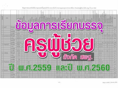 ข้อมูลการเรียกบรรจุและแต่งตั้งบุคคลเข้ารับราชการเป็นข้าราชการครูและบุคลากรทางการศึกษา ตำแหน่งครูผู้ช่วย สังกัด สพฐ. ปี พ.ศ.2559 และปี พ.ศ.2560