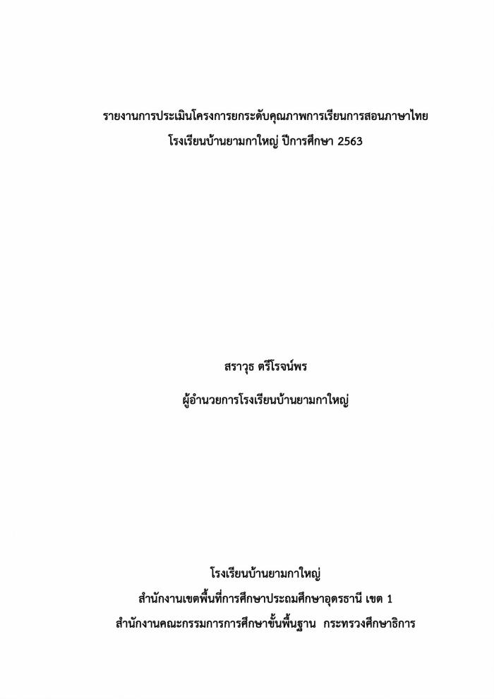 รายงานการประเมินโครงการยกระดับคุณภาพการเรียนการสอนภาษาไทย โรงเรียนบ้านยามกาใหญ่ ปีการศึกษา 2563 : สราวุธ ตรีโรจน์พร