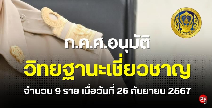 ก.ค.ศ. อนุมัติให้ข้าราชการครูและบุคลากรทางการศึกษามีและเลื่อนเป็นวิทยฐานะเชี่ยวชาญ จำนวน 9 ราย เมื่อวันที่ 26 กันยายน 2567