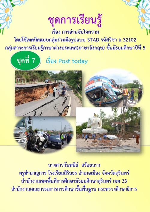 ชุดการเรียนรู้ เรื่อง การอ่านจับใจความ โดยใช้เทคนิคแบบกลุ่มร่วมมือรูปแบบ STAD รหัสวิชา อ 32102 ผลงานครูวันทนีย์ สร้อยนาก