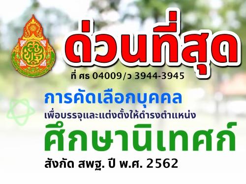 ด่วนที่สุด ที่ ศธ 04009/ว 3944-3945 เรื่อง การคัดเลือกบุคคลเพื่อบรรจุและแต่งตั้งให้ดำรงตำแหน่งศึกษานิเทศก์ สังกัด สพฐ. ปี พ.ศ. 2562