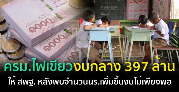 ครม.ไฟเขียวงบกลาง 397 ล้านให้ สพฐ. หลังพบจำนวนนร.เพิ่มขึ้นงบไม่เพียงพอ