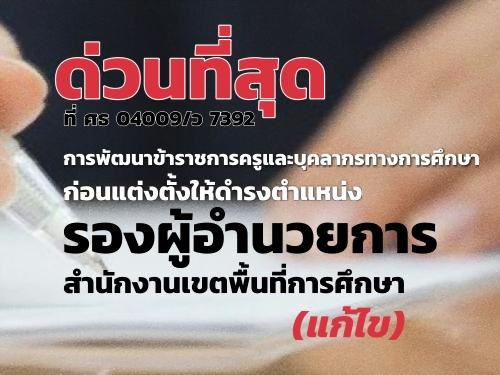ด่วนที่สุด ที่ ศธ 04009/ว 7392 การพัฒนาฯ ก่อนแต่งตั้งให้ดำรงตำแหน่งรองผู้อำนวยการสำนักงานเขตพื้นที่การศึกษา (แก้ไข)