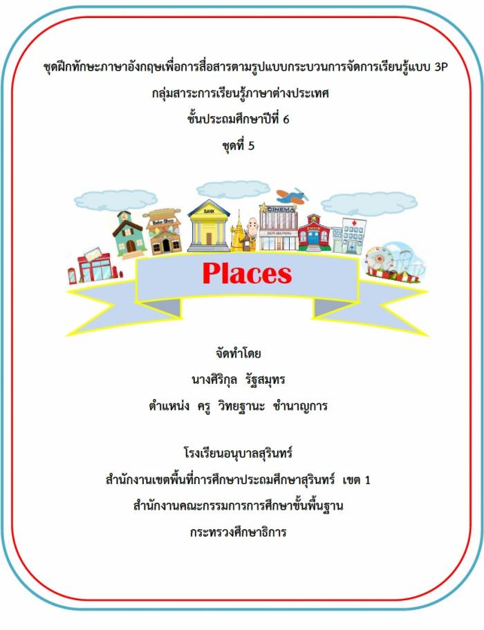 ชุดฝึกทักษะภาษาอังกฤษเพื่อการสื่อสารตามรูปแบบการเรียนรู้แบบ 3P เรื่อง All around me เล่มที่ 7 Places ผลงานครูสุพิชชา ปัญญาสุวรรณ
