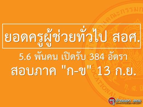ยอดครูผู้ช่วยทั่วไป สอศ. 5.6 พันคน เปิดรับ 384 อัตรา-สอบภาค "ก-ข"13 ก.ย.