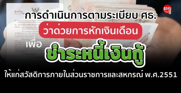 การดำเนินการตามระเบียบกระทรวงศึกษาธิการ ว่าด้วยการหักเงินเดือนเงินบำเหน็จบำนาญข้าราชการ เพื่อชำระหนี้เงินกู้ให้แก่สวัสดิการภายในส่วนราชการและสหกรณ์ พ.ศ.2551