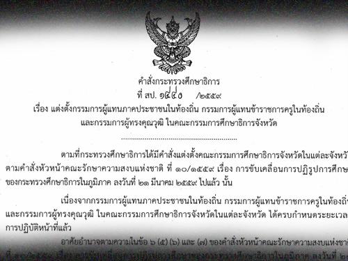 คำสั่งแต่งตั้งผู้แทนภาคประชาชนในท้องถิ่น กรรมการผู้แทนข้าราชการครูในท้องถิ่นและกรรมการผู้ทรงคุณวุฒิ ในกศจ.(ลว.11 ต.ค.59)