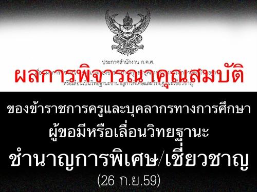 ผลการพิจารณาคุณสมบัติของข้าราชการครูและบุคลากรทางการศึกษาผู้ขอมีวิทยฐานะ ชำนาญการพิเศษ/เชี่ยวชาญ (26ก.ย.59)