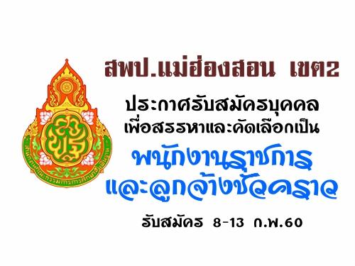สพป.แม่ฮ่องสอน เขต 2 ประกาศรับสมัครบุคคลเพื่อสรรหาและคัดเลือกเป็นพนักงานราชการและลูกจ้างชั่วคราว รับสมัคร 8-13 ก.พ.60