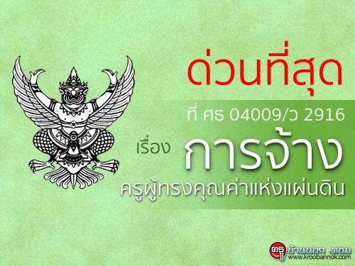 ด่วนที่สุด ที่ ศธ 04009/ว 2916 เรื่อง การจ้างครูผู้ทรงคุณค่าแห่งแผ่นดิน