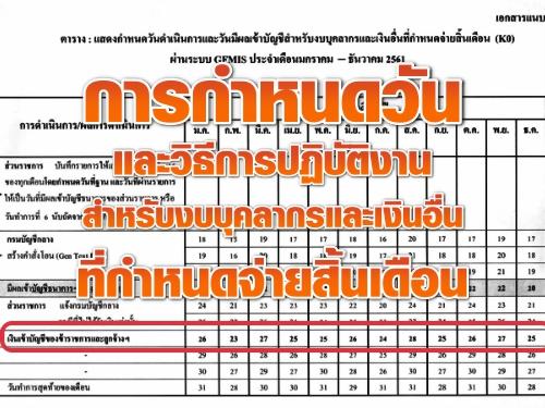 การกำหนดวันและวิธีการปฏิบัติงานสำหรับงบบุคลากรและเงินอื่นที่กำหนดจ่ายสิ้นเดือน (ว 491)