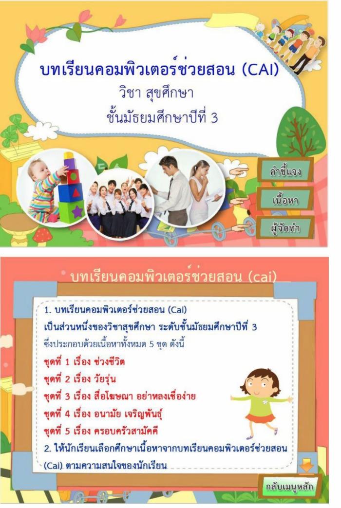 บทเรียนคอมพิวเตอร์ช่วยสอน (CAI) วิชา สุขศึกษา ม.3 ผลงานครูบุญธัน ธรรมปัญญา