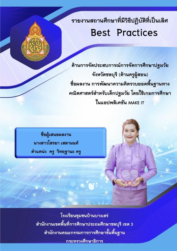 รายงานวิธีการปฏิบัติที่เป็นเลิศ (Best PracticEs) การพัฒนาความคิดรวบยอดพื้นฐานทางคณิตศาสตร์สำหรับเด็กปฐมวัย โดยใช้เกมการศึกษาในแอปพลิเคชัน MAKE IT : โสรยา เสลานนท์