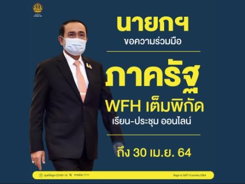 นายกรัฐมนตรี ขอความร่วมมือภาครัฐ Work from Home เต็มขีดความสามารถ เรียน-ประชุม Online ถึง 30 เม.ย. 64