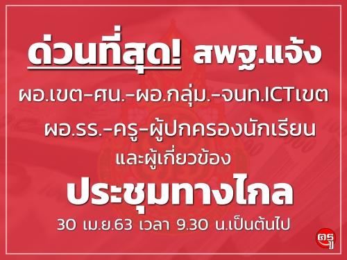 ด่วนที่สุด! สพฐ.แจ้งผอ.เขต-ศน.-ผอ.กลุ่ม.-จนท.ICTเขต-ผอ.รร.-ครู-ผู้ปกครองนักเรียนและผู้เกี่ยวข้องประชุมทางไกล 30 เม.ย.63 เวลา 9.30 น.เป็นต้นไป