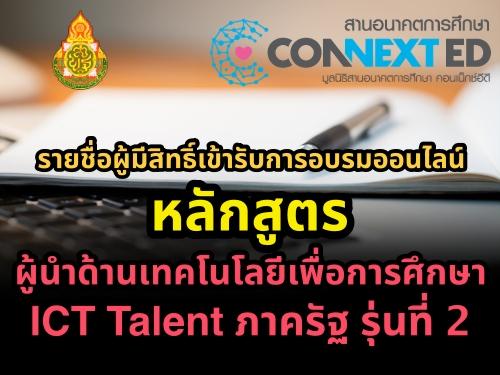 รายชื่อผู้มีสิทธิ์เข้ารับการอบรมออนไลน์หลักสูตร ผู้นำด้านเทคโนโลยีเพื่อการศึกษา ICT Talent ภาครัฐ รุ่นที่ 2
