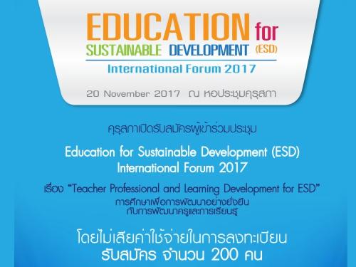 คุรุสภาขอเชิญสมัครเข้าร่วมการประชุมทางวิชาการ Education for Sustainable Development (ESD) International Forum 2017
