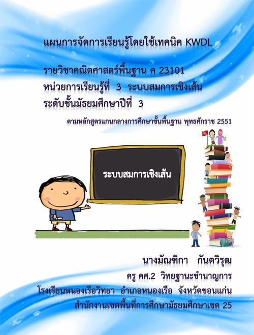 แผนการจัดการเรียนรู้โดยใช้เทคนิค KWDL เรื่อง ระบบสมการเชิงเส้น ผลงานครูมัณฑิกา กันตวิรุฒ