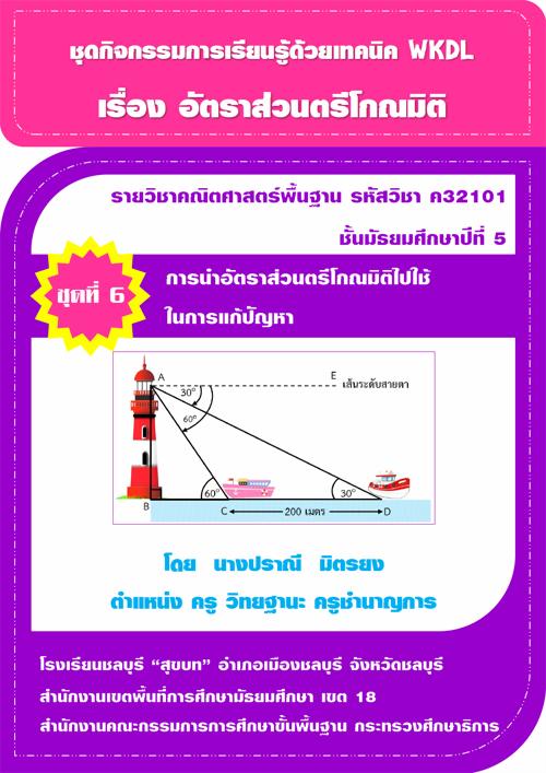 ชุดกิจกรรมการเรียนรู้ด้วยเทคนิค KWDL เรื่อง อัตราส่วนตรีโกณมิติ รายวิชาคณิตศาสตร์พื้นฐาน ผลงานครูปราณี มิตรยง