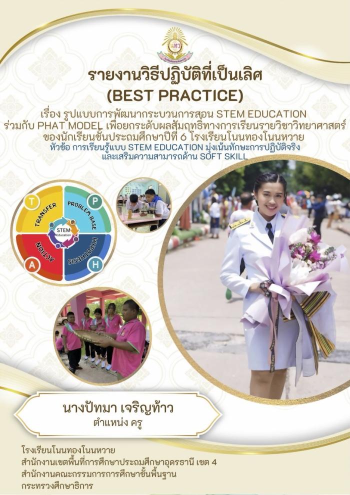 รูปแบบการพัฒนากระบวนการสอน STEM EDUCATION ร่วมกับ PHAT MODEL เพื่อยกระดับผลสัมฤทธิทางการเรียนรายวิชาวิทยาศาสตร์ของนักเรียนชั้นประถมศึกษาปีที่ 6 โรงเรียนโนนทองโนนหวาย : ปัทมา เจริญท้าว