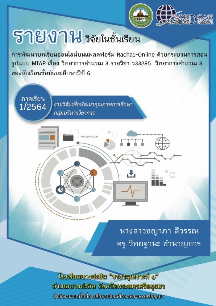 การพัฒนาบทเรียนออนไลน์บนแพลตฟอร์ม Racha1-Onlineด้วยกระบวนการสอนรูปแบบ MIAP เรื่อง วิทยาการคำนวณ 3 : ชญาภา ลีวรรณ