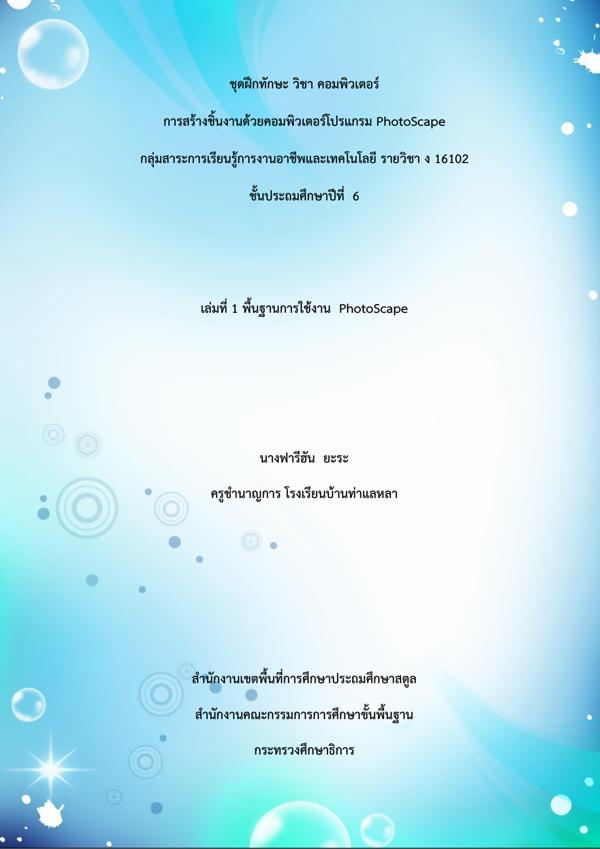 ชุดฝึกทักษะ เรื่อง การสร้างชิ้นงานด้วยคอมพิวเตอร์โปรแกรม Photoscape ผลงานครูฟารีฮัน ยะระ