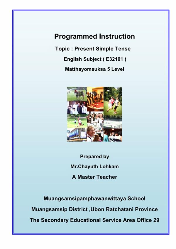 Programmed Instruction Topic : Present Simple Tense Prepared by Mr.Chayuth Lohkam