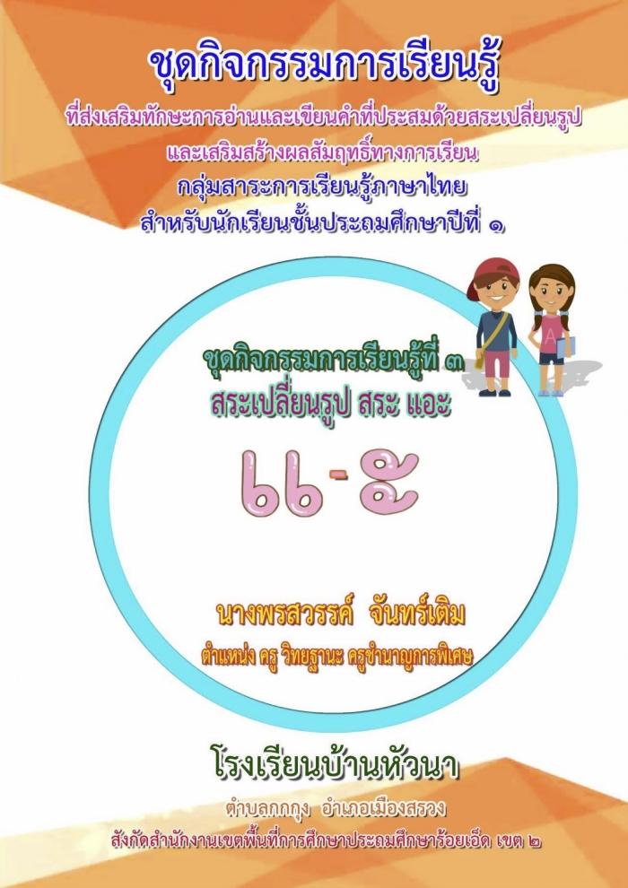 ชุดกิจกรรมการเรียนรู้โดยใช้กลวิธีแบบ SQ4R ที่ส่งเสริมทักษะการ อ่านและเขียนค าที่ประสมด้วยสระเปลี่ยนรูป : พรสวรรค์ จันทร์เติม